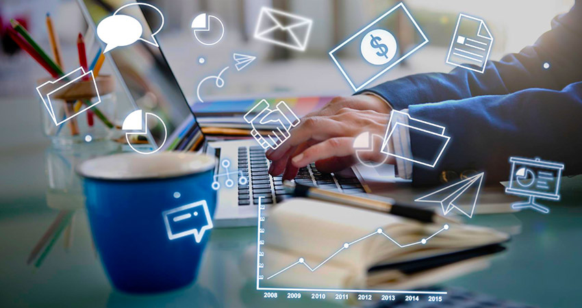Aktivitas kerja digital yang fokus pada efisiensi, pengelolaan data, dan strategi bisnis berbasis teknologi.